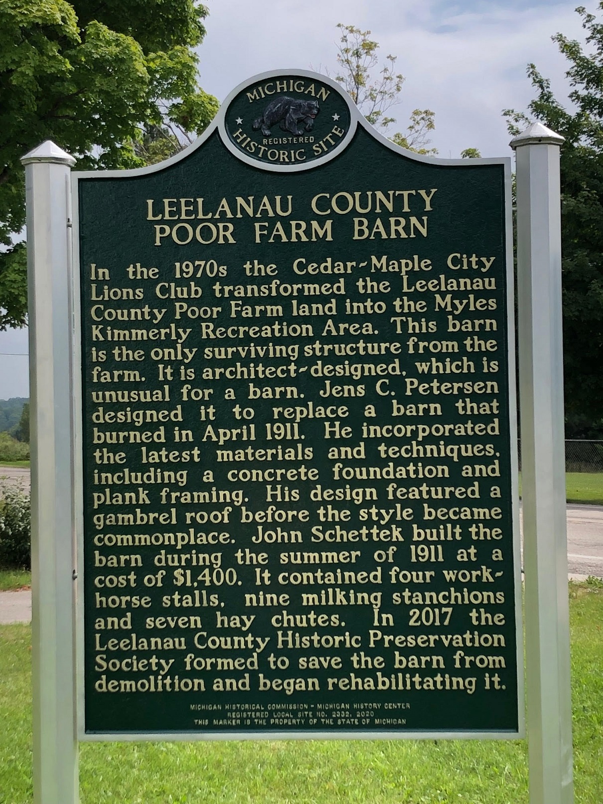 Today, the Poor Farm Barn stands ready to fulfill its new role as a symbol of both our culture’s social history and the area’s important agricultural heritage. It sits as a lone sentinel to recall how we responded to our community in times of dire need. The Myles Kimmerly Recreation Park in which the barn sets draws visitors during the season for educational and civic events. It once again has become an asset to Leelanau County—and an exceptional preservation story.